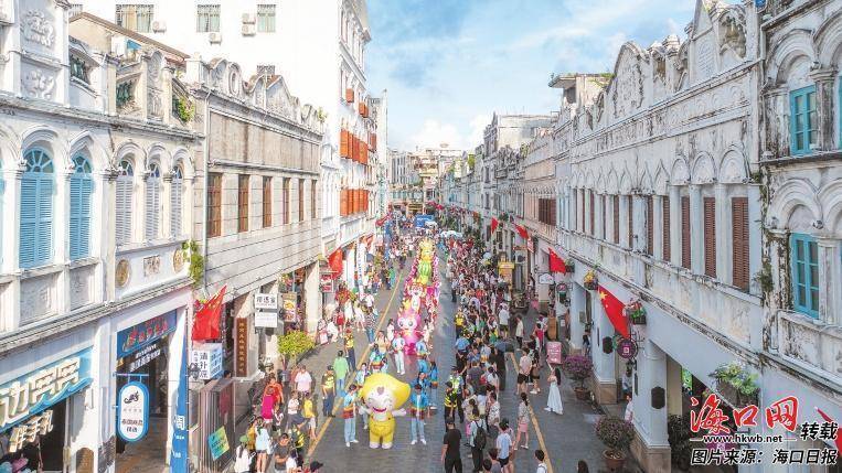10月3日,“海口·我爱鲁”海岛欢乐大巡游活动在骑楼老街举行,吸引众多市民游客驻足观看。记者 杨鹤 摄